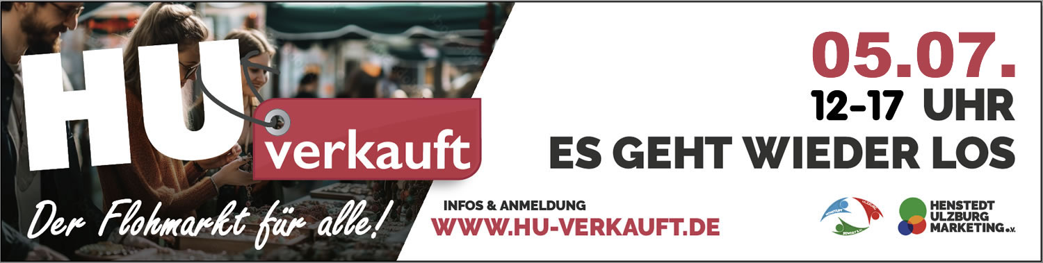 Parallel zu den HU-BecksDays im und vor dem Naturbad Beckersberg und zum verkaufsoffenen Sonntag, am 05. Juli 2026 werden die Bürgerinnen und Bürger wieder zu einem besonderen Flohmarkt von 12:00 bis 17:00 Uhr über das gesamte Gemeindegebiet eingeladen. Der Flohmarkt „Henstedt-Ulzburg Verkauft“ ist eine Gemeinschaftsaktion von HU-Marketing e.V. und HU-Bewegt e.V..